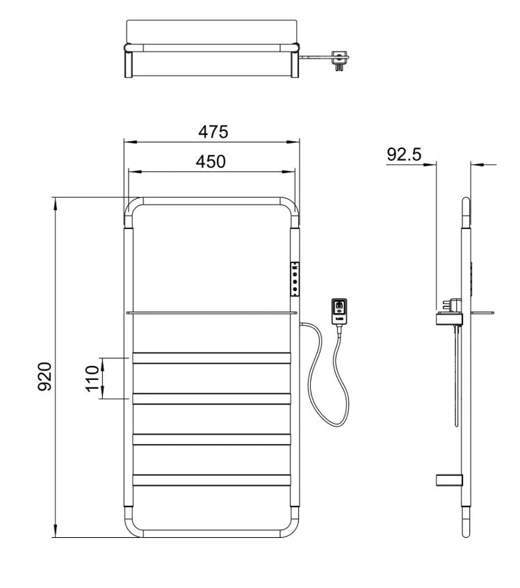 Полотенцесушитель электрический Wonzon & Woghand Dusseldorf WW-A203-MB 475х920 мм, чёрный матовый