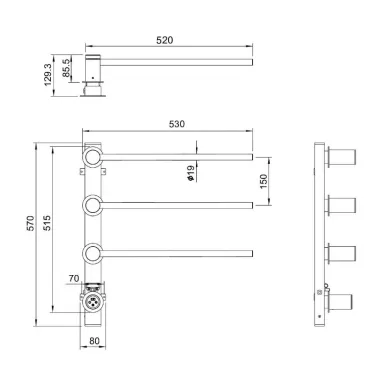 Полотенцесушитель электрический Wonzon & Woghand Hamburg WW-AL315-BG встраиваемый, брашированное золото
