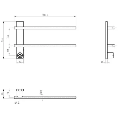 Полотенцесушитель электрический Wonzon & Woghand Nurnberg WW-AL345-BG 520x630 мм, брашированное золото