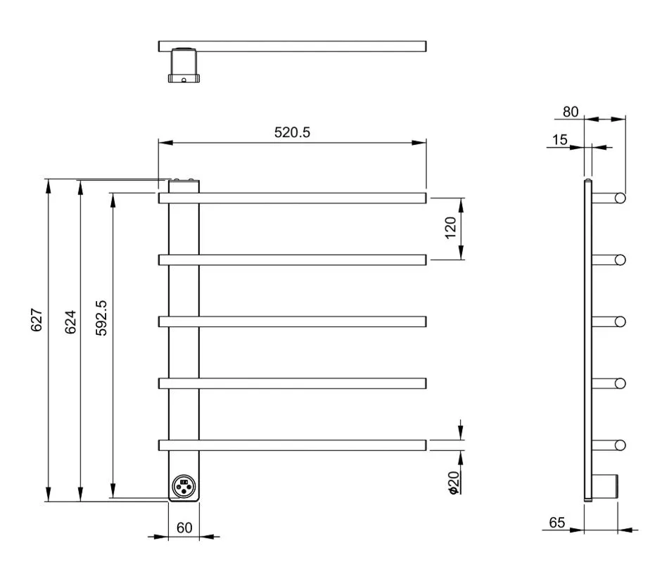 Полотенцесушитель электрический Wonzon & Woghand Nurnberg WW-AL345-MB 520x630 мм, чёрный матовый