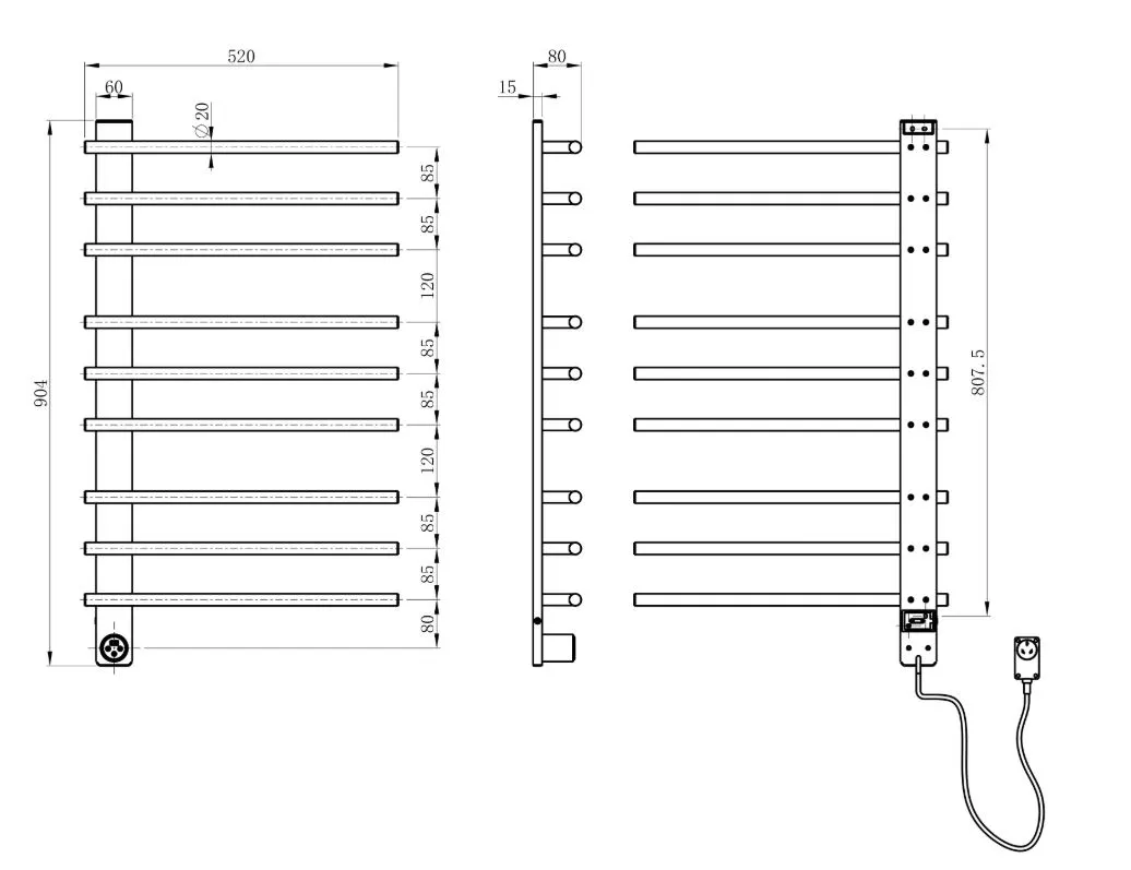 Полотенцесушитель электрический Wonzon & Woghand Nurnberg WW-AL349-GM 520x900 мм, темный графит