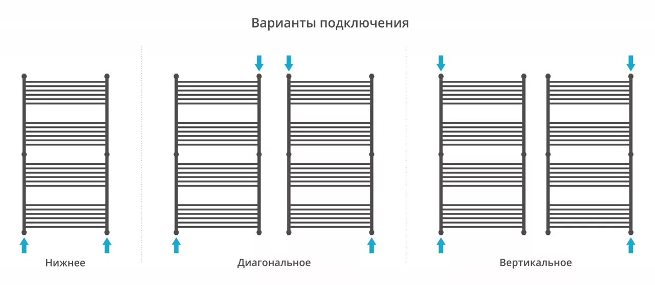 - подключение-диагональное/нижнее/вертикальное