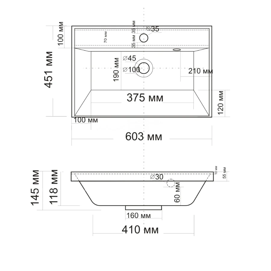 Диаметр слива: 4,5 см
