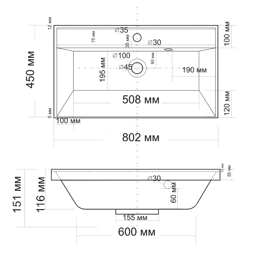 Подходящие тумбы: AQUAme S1, AQUAme S3 (80 см)