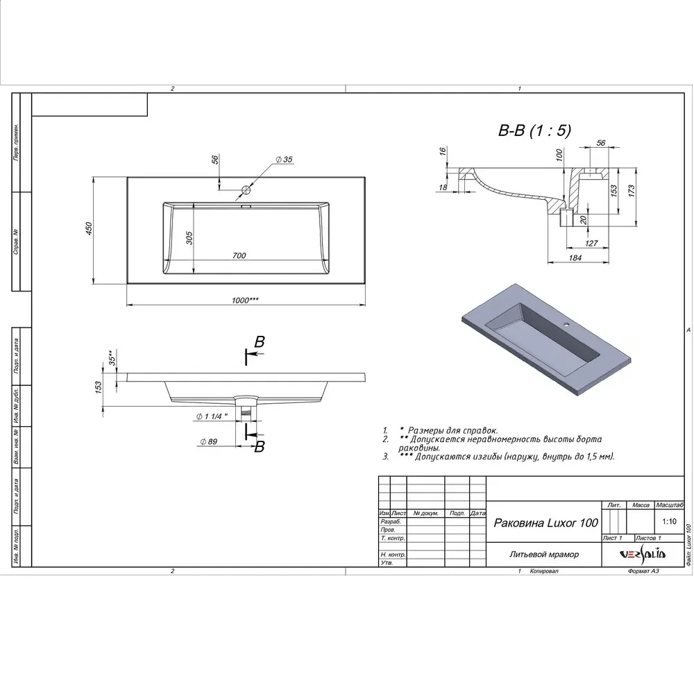 Раковина AQUAME Versalia Luxor 4670142930839 100 см, белая