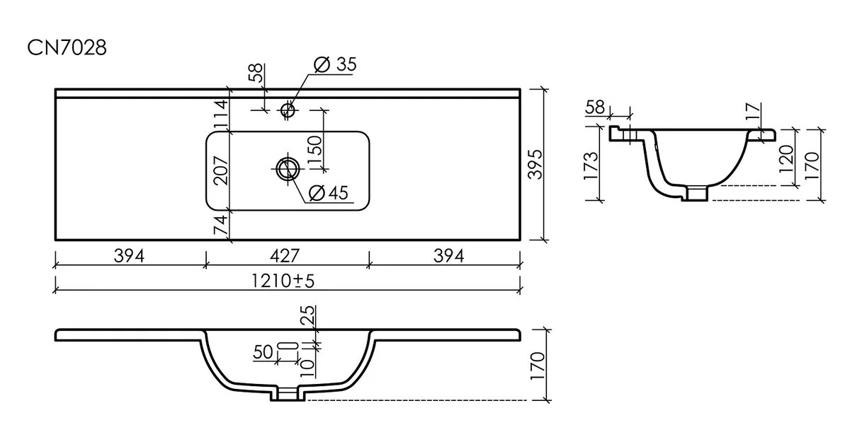 - Диаметр слива: 4.5 см