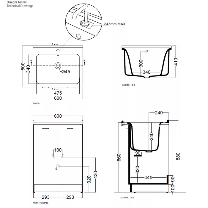 Раковина 60х50см с 1 отв. выбитым под смеситель (запчасть для комплекта для постирочной 9166), без сифона 7535, цвет белый.