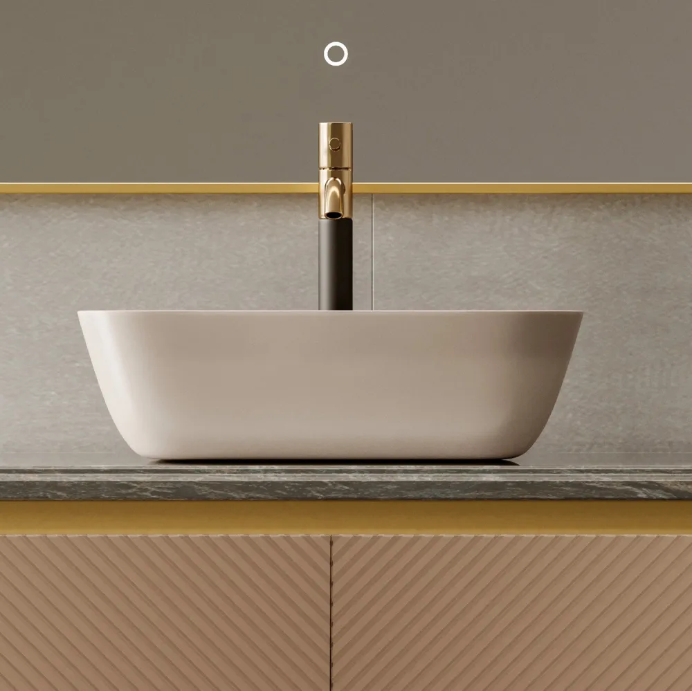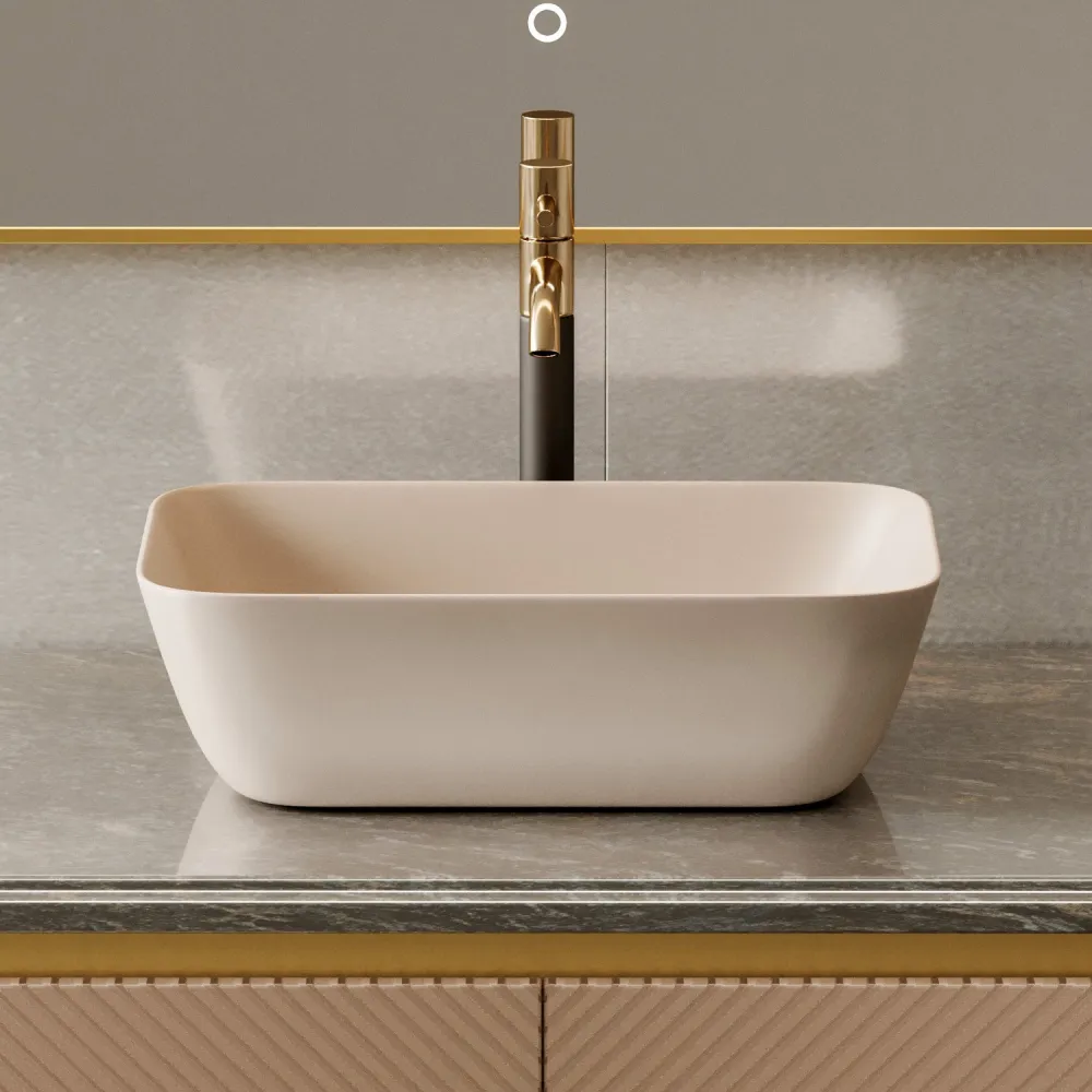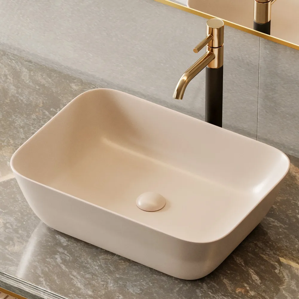 Раковина накладная Abber Rechteck 46см, светло-бежевая матовая