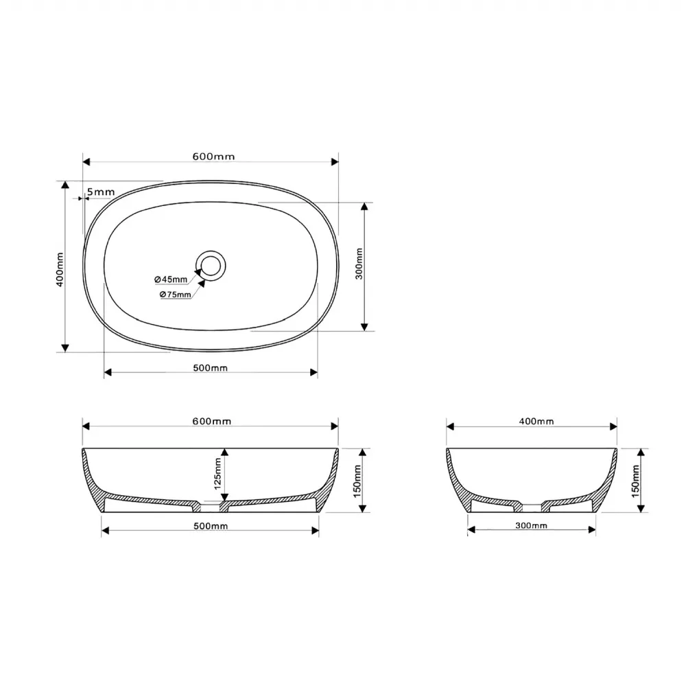 - Раковина накладная Abber Stein AS2633 60 см, белая матовая
