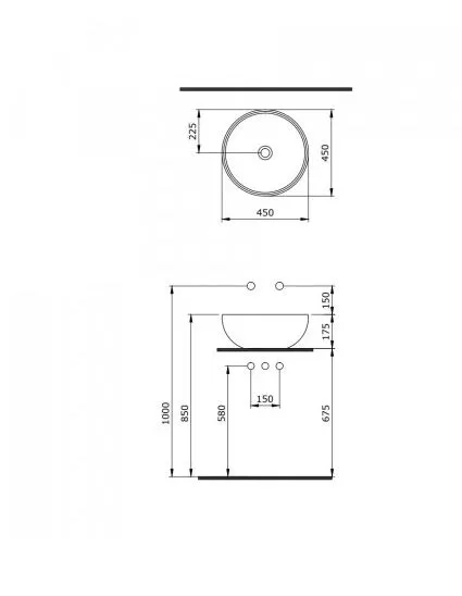 - Круглой формы, без отверстия под смеситель, матовый антрацит.