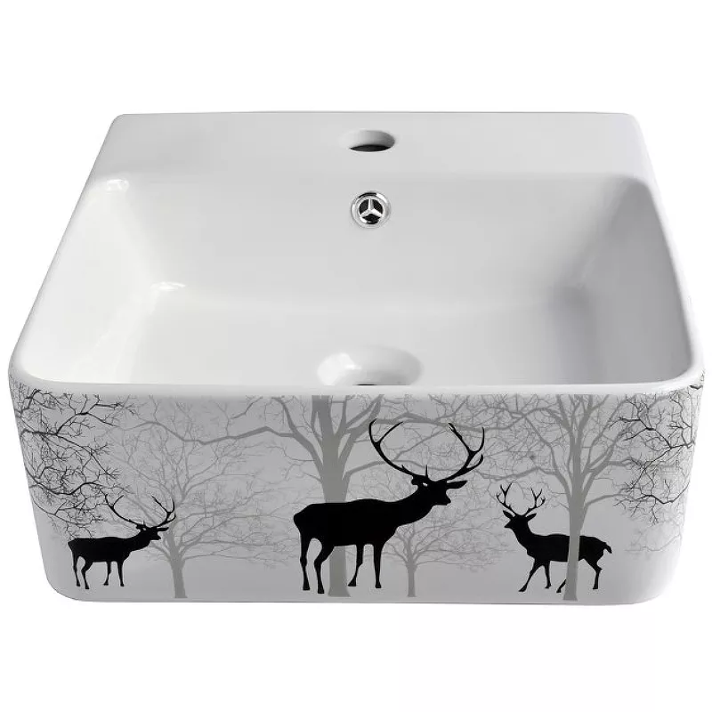 Раковина накладная Bronze de Luxe Black Deer 1060BD белый глянец с декором