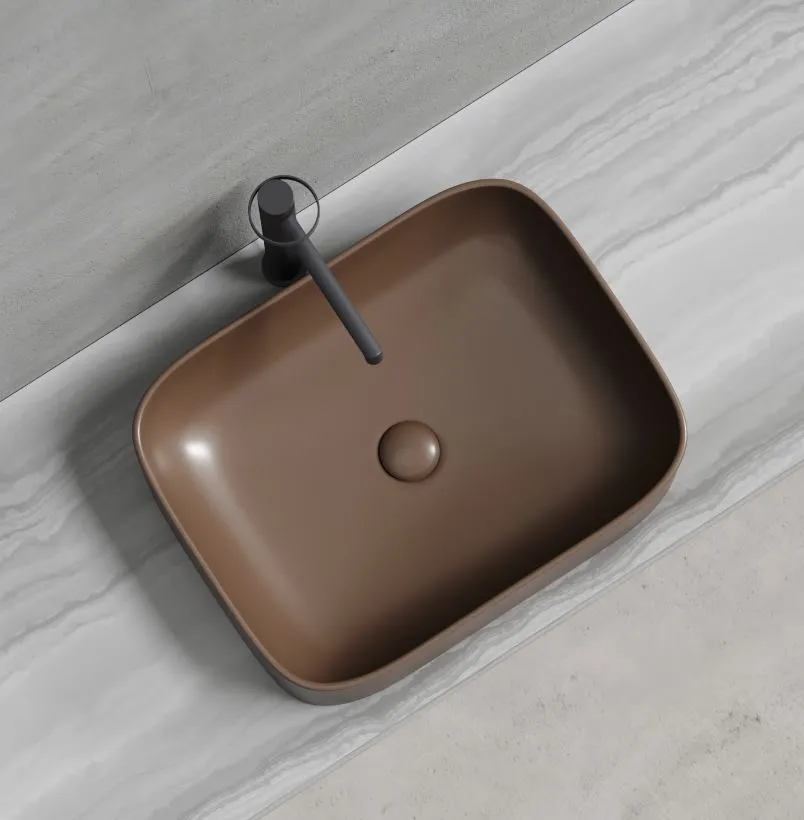 Умывальник чаша накладная прямоугольная (цвет Темно-Коричневый Матовый) Element 505*380*150мм