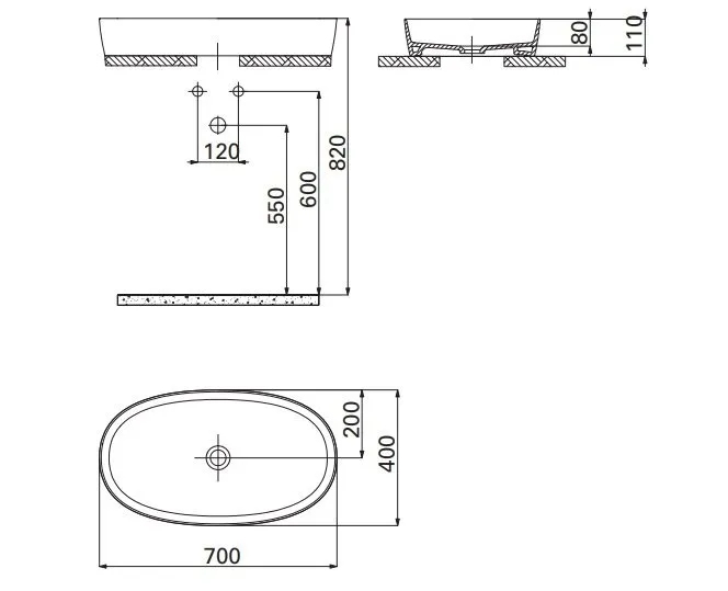 Раковина накладная Creavit Loop LP170-00CB00E-0000 70x40 см, белая