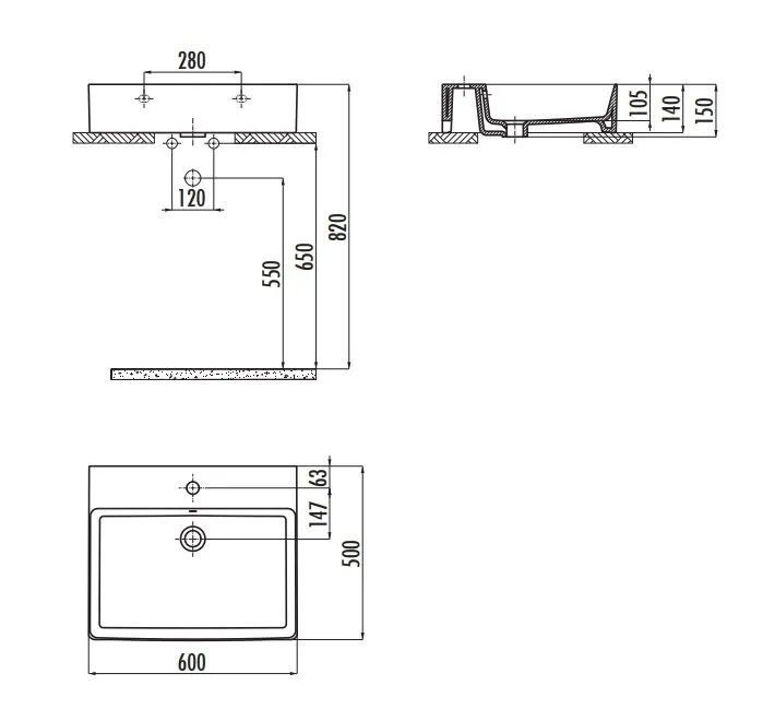 | Монтаж: | к стене , к столешнице сверху , к тумбе |