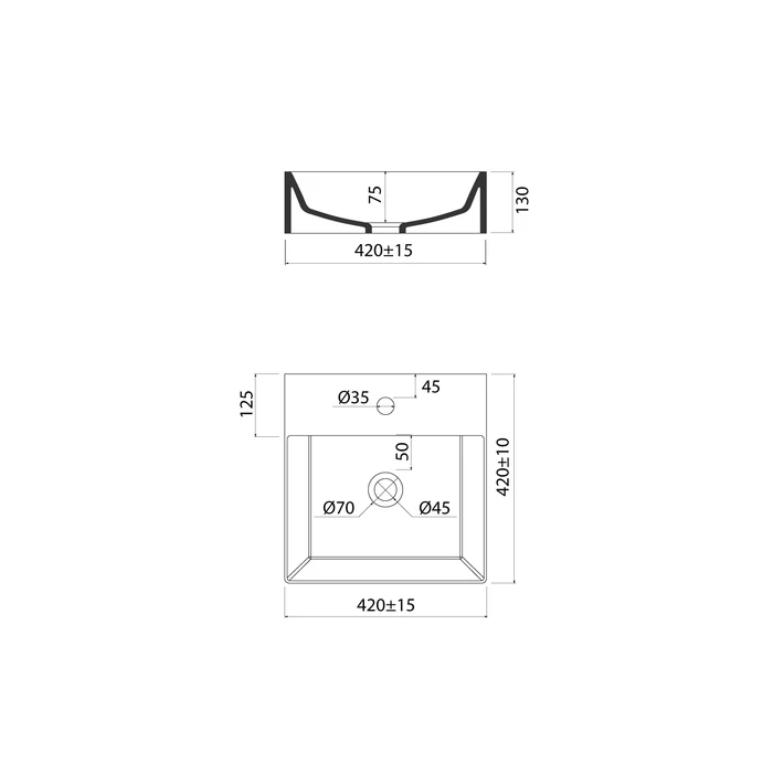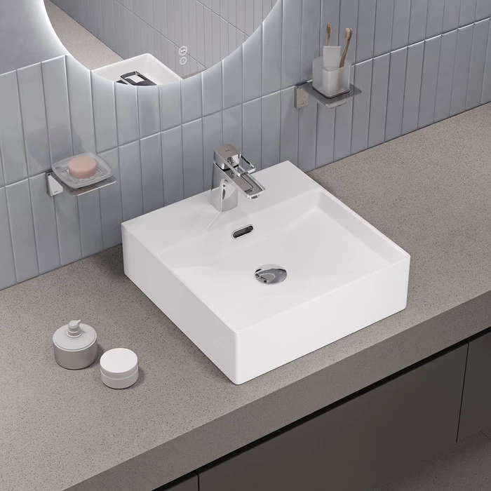 Стильный умывальник Bild для ванной комнаты актуального лаконичного дизайна с удобной полочкой подойдёт к любому современному интерьеру. Размер 420х420х130 мм. Два варианта установки: подвесной и настольный. Изготовлен из санитарной керамики – она более устойчива к сколам и царапинам, чем фаянс или стекло, а её белоснежный цвет со временем не потускнеет и не пожелтеет. Встроенный перелив – страховка от потопа в ванной. Полочка на раковине – специальная утолщённая площадка (не просто отверстие в тонком бортике), предназначенная для монтажа стандартного смесителя. Не нужно искать специальную модель для накладного умывальника, подойдет большинство смесителей, представленных на рынке. Два варианта установки: подвесной и настольный. Легко вписать в любой интерьер ванной и при необходимости изменить концепцию дизайна, не меняя умывальник. Крепежи в комплекте – в коробке с умывальником уже есть всё необходимое для монтажа, не нужно ничего докупать. Гарантия на санитарный фарфор IDDIS® – 25 лет.