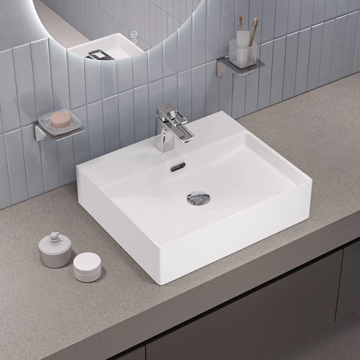 Стильный умывальник Bild для ванной комнаты актуального лаконичного дизайна с удобной полочкой подойдёт к любому современному интерьеру. Размер 500х420х130 мм. Два варианта установки: подвесной и настольный. Изготовлен из санитарной керамики – она более устойчива к сколам и царапинам, чем фаянс или стекло, а её белоснежный цвет со временем не потускнеет и не пожелтеет. Встроенный перелив – страховка от потопа в ванной. Полочка на раковине – специальная утолщённая площадка (не просто отверстие в тонком бортике), предназначенная для монтажа стандартного смесителя. Не нужно искать специальную модель для накладного умывальника, подойдет большинство смесителей, представленных на рынке. Два варианта установки: подвесной и настольный. Легко вписать в любой интерьер ванной и при необходимости изменить концепцию дизайна, не меняя умывальник. Крепежи в комплекте – в коробке с умывальником уже есть всё необходимое для монтажа, не нужно ничего докупать. Гарантия на санитарный фарфор IDDIS® – 25 лет.