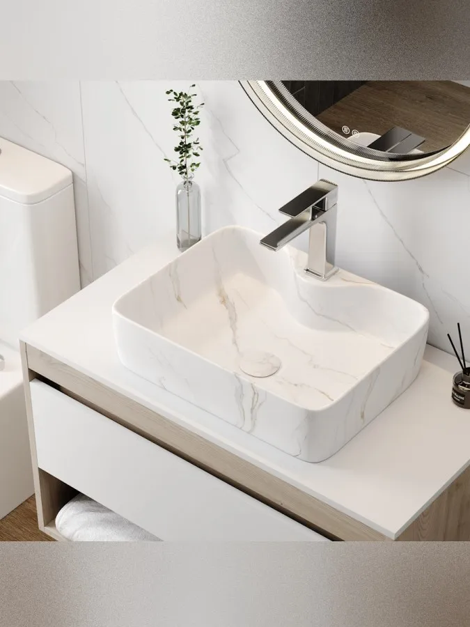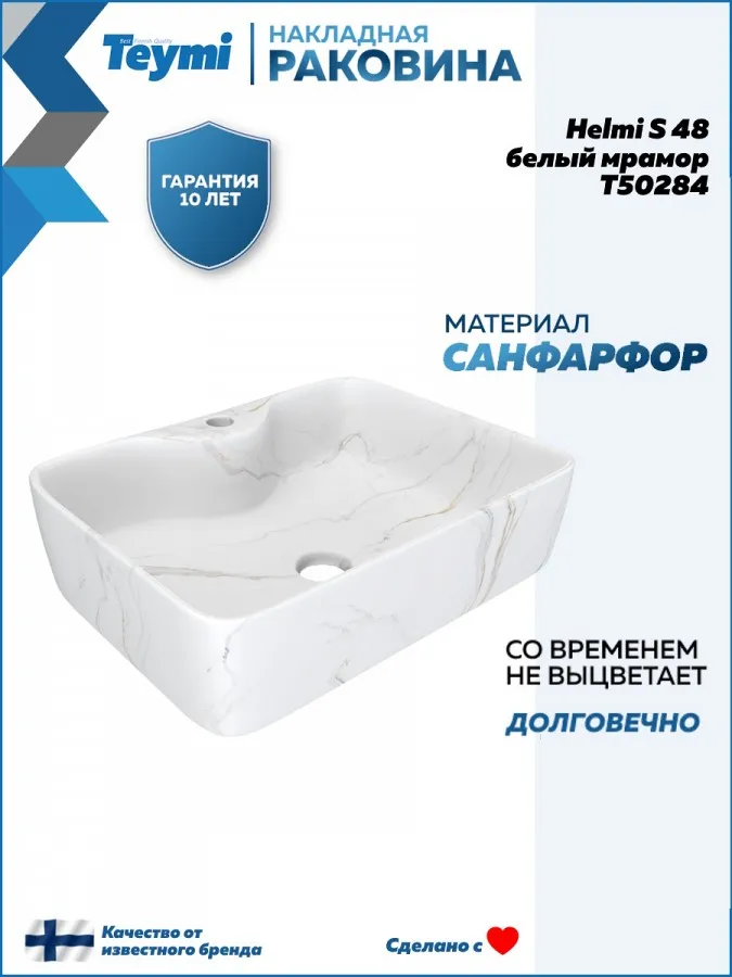 Раковина накладная Teymi Helmi S T50284 48x37, мрамор белый