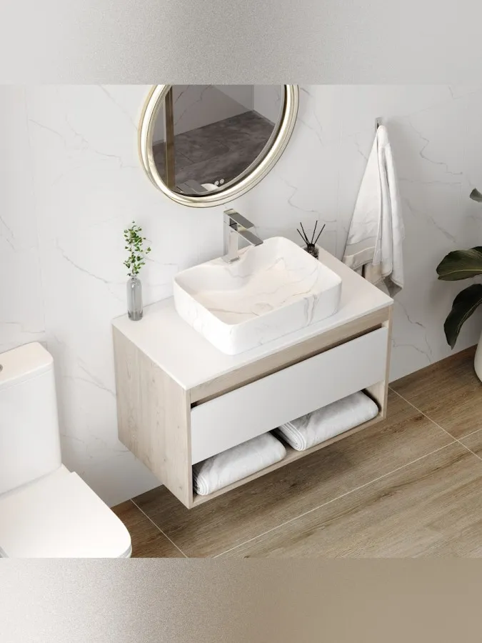 - Добавьте в интерьер ванной комнаты ноту природной элегантности с раковиной Teymi Helmi S 48. Эта модель объединяет в себе надежность финской сантехники и трендовый дизайн под натуральный камень, предлагая готовое решение для комфортного использования.