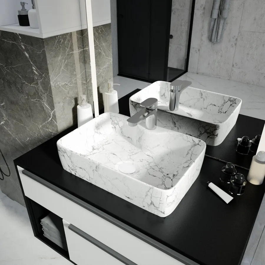 Наименование товара: Раковина Teymi Helmi S 48 накладная с полочкой под смеситель, Белый Мрамор T50298.