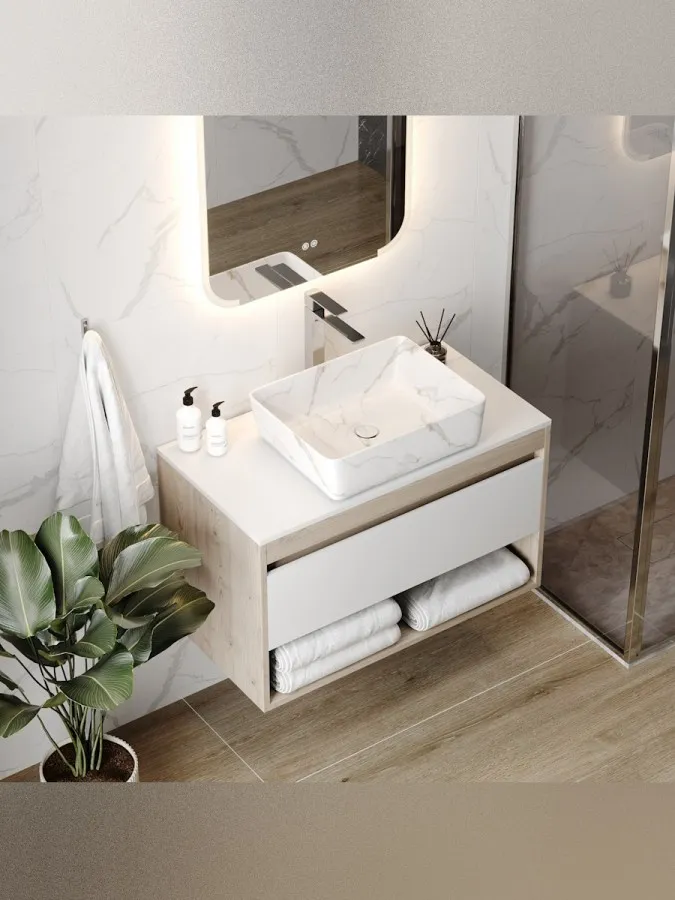 - Преобразите вашу ванную комнату с помощью раковины Teymi Helmi 50, сочетающей финские стандарты качества и эстетику натурального камня. Элегантный рисунок под белый мрамор делает эту модель идеальным выбором для создания стильного и современного интерьера.