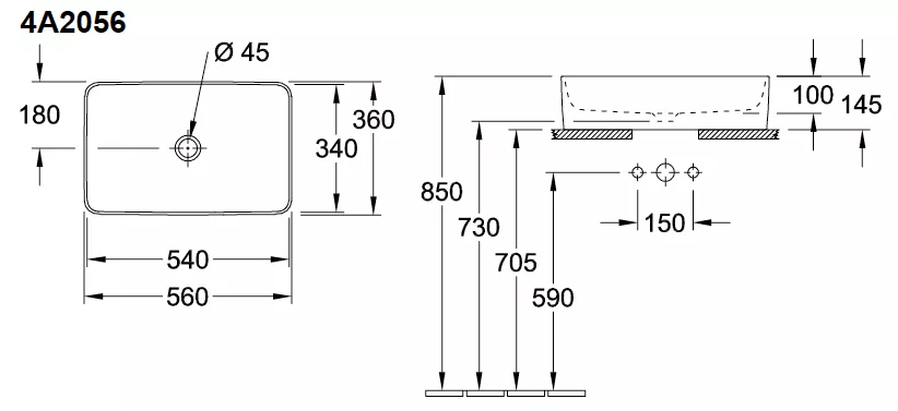 Раковина накладная Villeroy & Boch Collaro 4A2056RW 56 см Stone White
