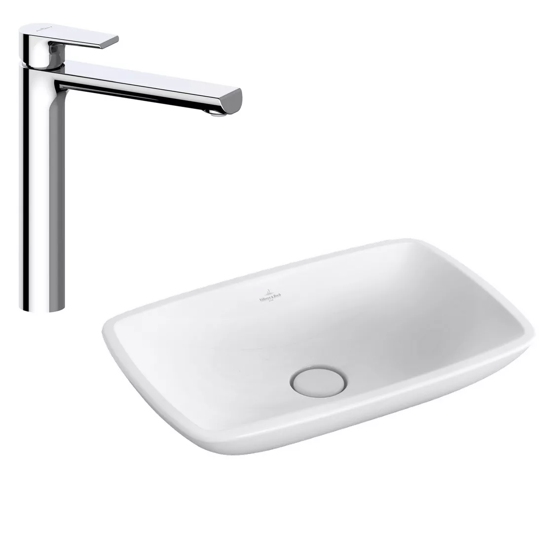 - Раковина накладная Villeroy & Boch Loop & Friends (51540001) (58 см) со смесителем Liberty (TVW10700400061)