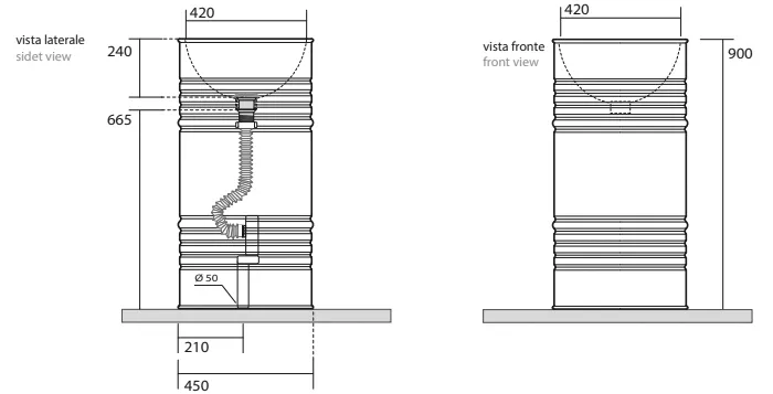 Раковина свободностоящая "BARREL" d 45,H 90 см, без отв под смеситель, слив в пол, в комплекте с сифоном и гибкой трубкой, цвет белый.