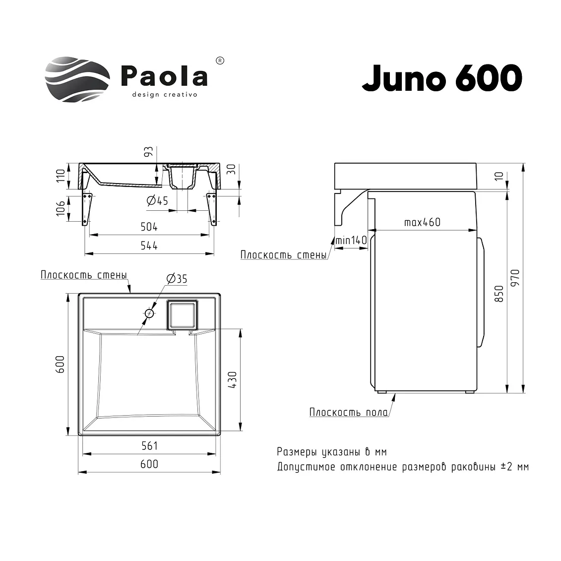 Раковина Paola Juno Paola Juno 600 60 см, на стиральную машину