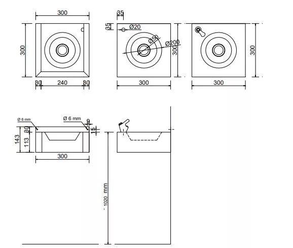 - Размеры: 143 высота x 300 ширина x 300 глубина мм .