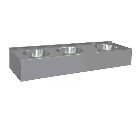 - Раковина с тремя накладными умывальниками из нержавеющей стали AISI 304