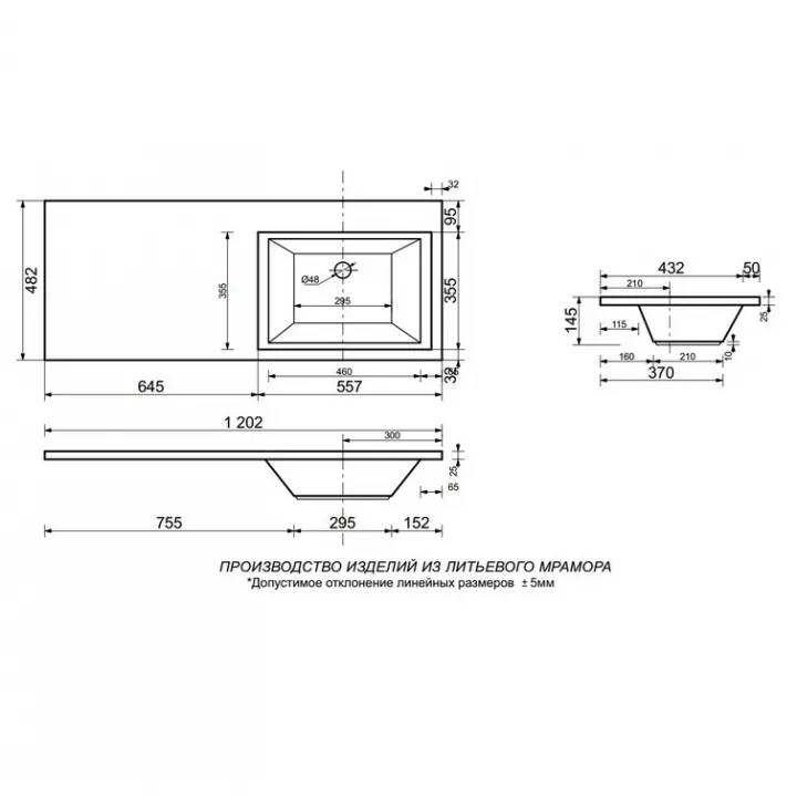 Раковина над стиральной машиной "Лидер" со столешницей размером 1200*482 ширина*глубина выполнена в современном дизайне. Особенность этой раковины в совмещении в одно целое раковины и столешницы находящейся над стиральной машиной. Есть несколько вариантов установки раковины. Она может быть установлена с одной стороны на тумбу, и с другой стороны краем крыла на кронштейн. Возможно установить её только на 3 кронштейна (боковые и центральный). Чаша раковины имеет прямоугольную форму. На широком крыле раковины очень удобно размещать гигиенические принадлежности. Материал раковины литьевой мрамор. Кронштейны приобретаются отдельно.