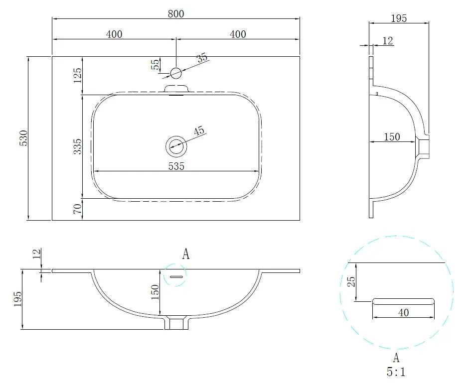 Раковина Vincea Elise VCB-4EL800MW 80x53 см, белая матовая