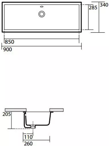 Раковина встраиваемая под столешницу 900x340мм в комплекте с крепежом, цвет белый.