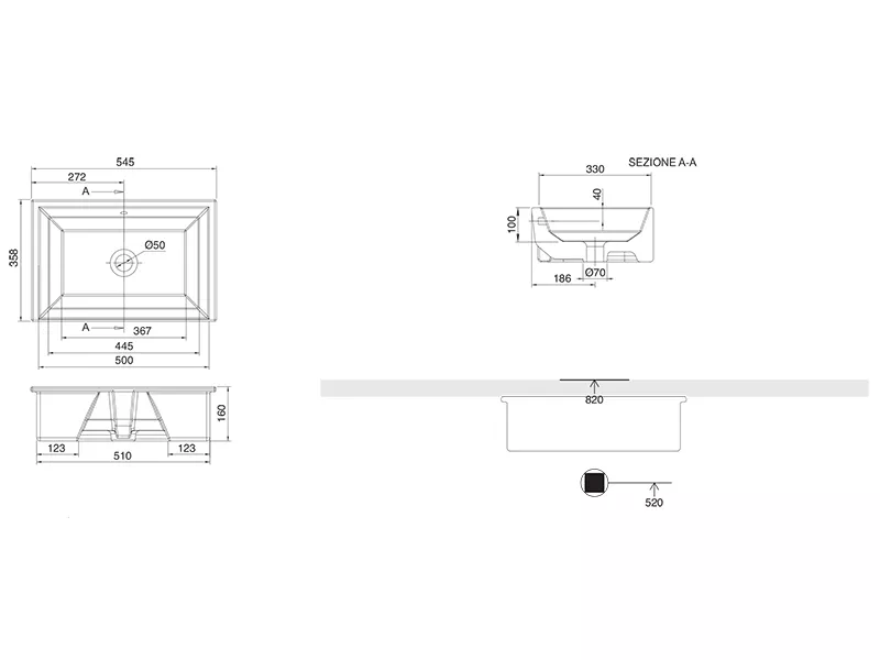 Раковина встраиваемая Scarabeo Tech 8037 54 см
