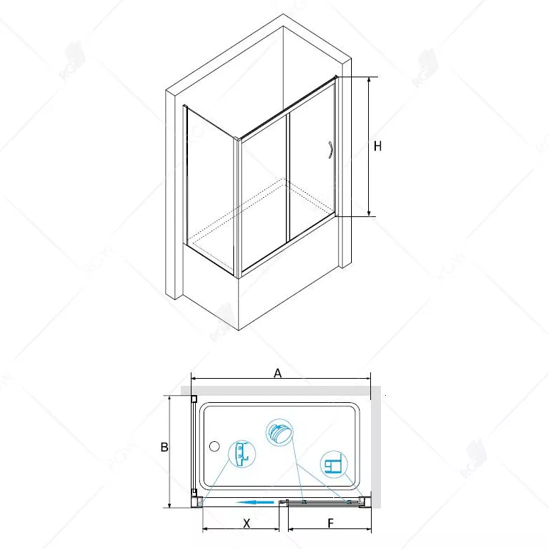 Шторка на ванну раздвижная двустворчатая с боковым элементом Z-52