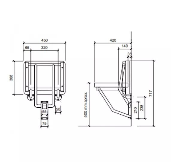 Сиденье для душа - плита с тремя точками опоры из нержавеющей стали AISI 304 и мягкая поверхность из синтетической пены и искусственной кожи. Предназначен для настенного монтажа и складывания, когда он не используется. Подходит для людей с ограниченными возможностями. Макс. нагрузка 100 кг.