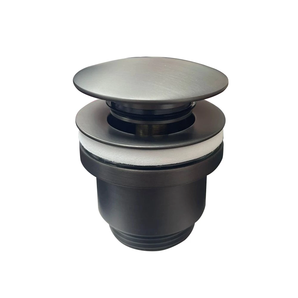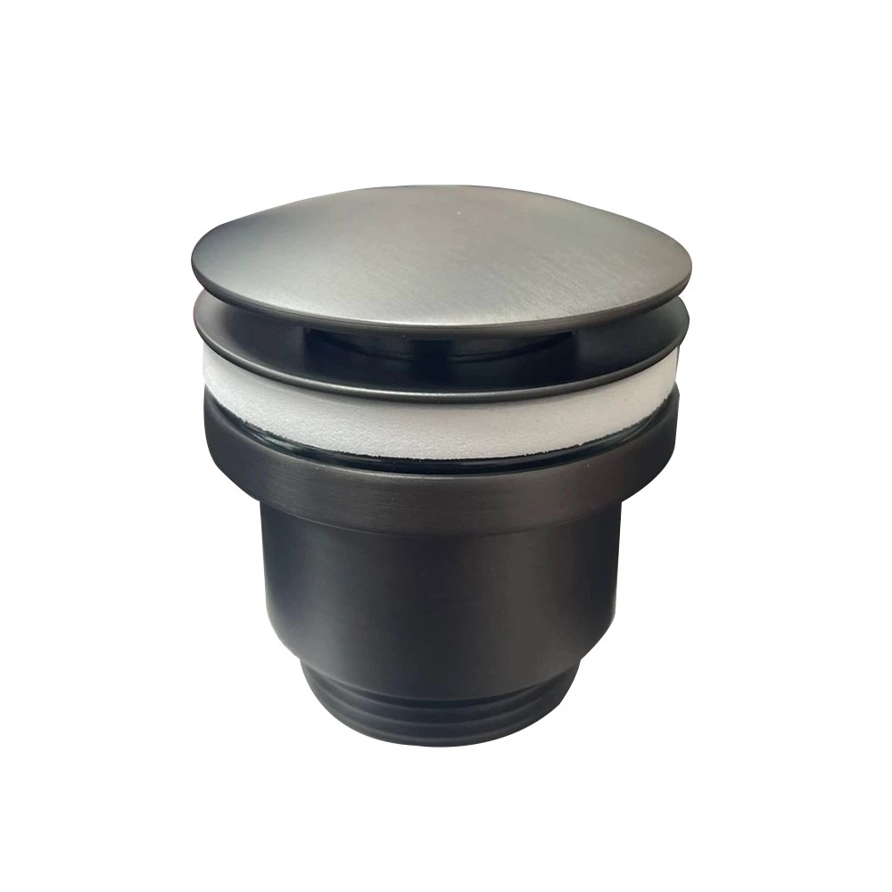 Донный клапан Haiba HB64-3. Данная модель имеет металлический корпус. Крышка пепельного цвета, выполнена из нержавеющей стали. Силиконовые прокладки обеспечивают плотное прилегание донного клапана к посадочному месту раковины. Без перелива.