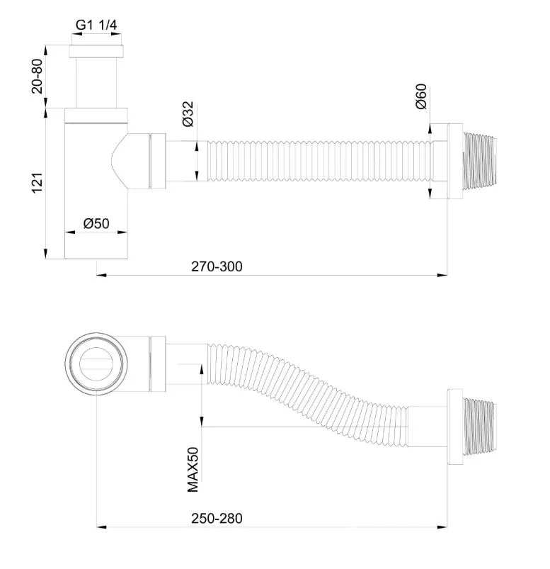 - Бутылочный сифон предполагает постоянное наличие воды в нем, данная часть снимается для очистки