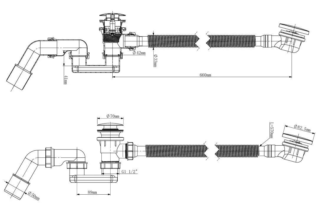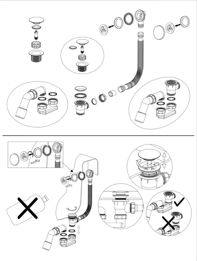 - Автоматический слив (клик-клак) управляется нажатием на пробку слива.