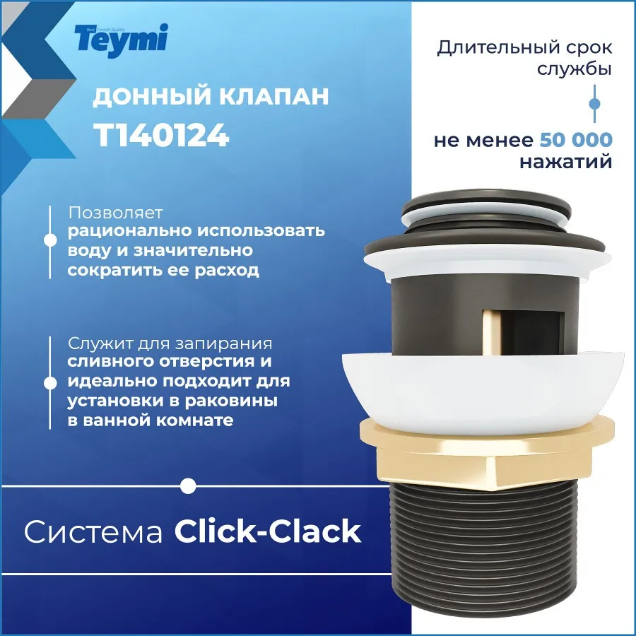 Сливной набор для раковины Teymi Ritta T140124 с переливом, click-clack, чёрный матовый
