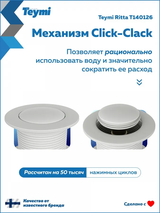 - Teymi Ritta T140126 — это сочетание надежности, комфорта и эстетики. Он станет незаметным, но важным элементом, повышающим удобство использования раковины и поддерживающим аккуратный внешний вид интерьера.