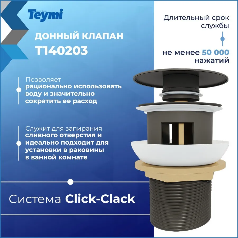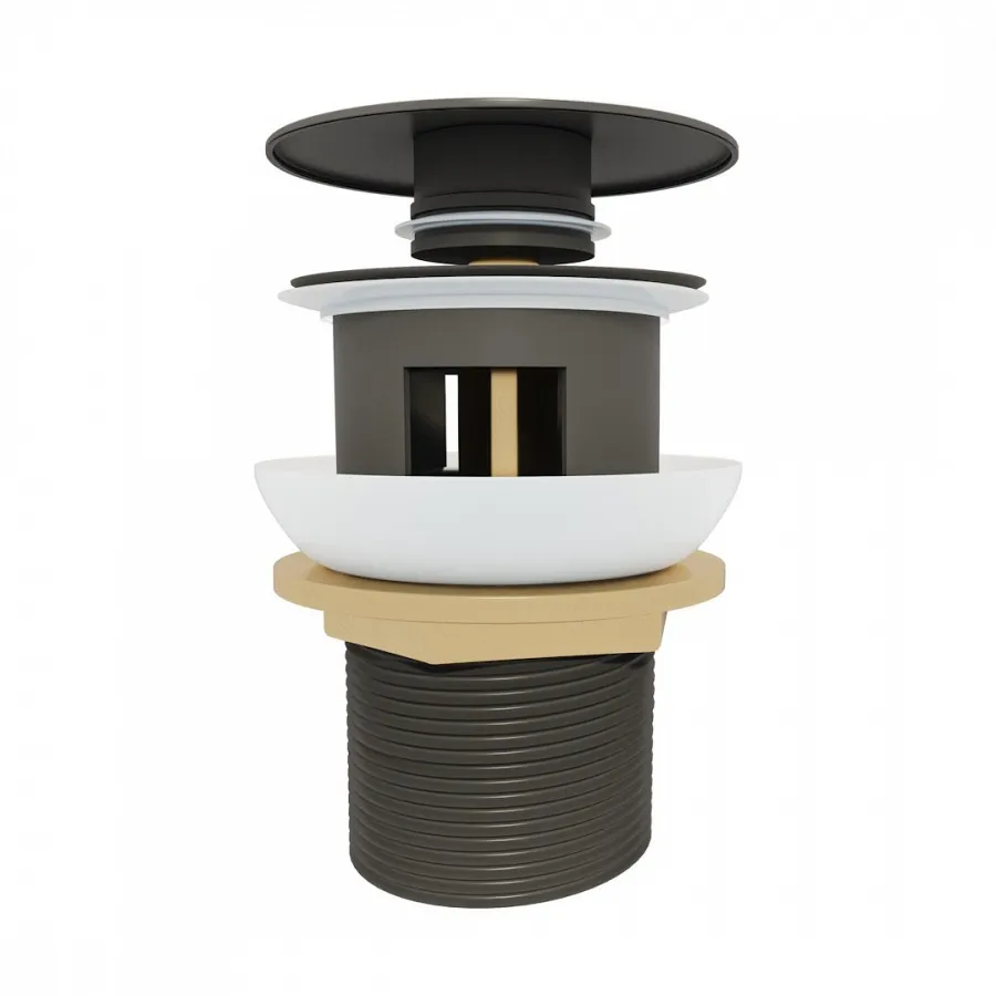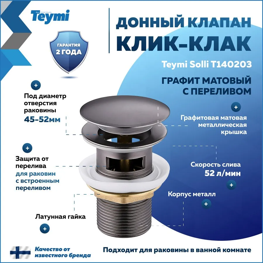 Донный клапан с переливом Teymi Solli для раковины, графит матовый T140203 – стильное и функциональное решение для современной ванной комнаты, которое подчеркнет изысканность интерьера и станет безупречным дизайнерским акцентом.