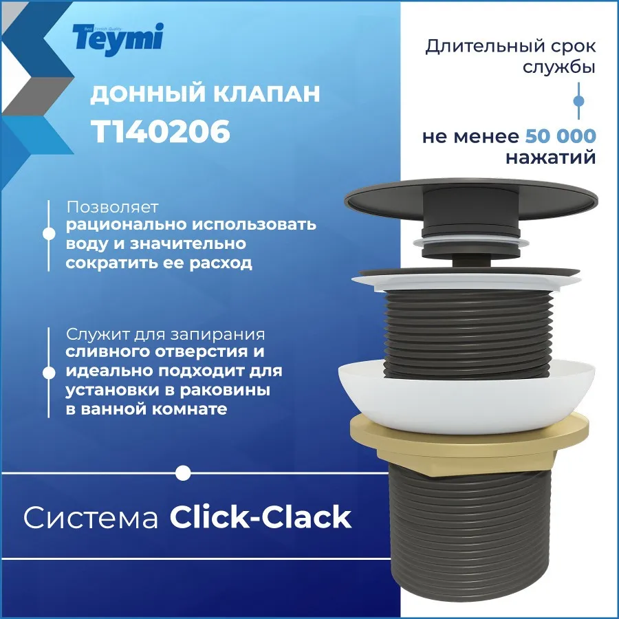 Сливной набор для раковины Teymi Solli T140206 без перелива, click-clack, графит матовый