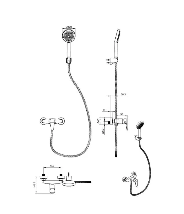 - Душевой шланг с защитой от перекручивания: 150 см.