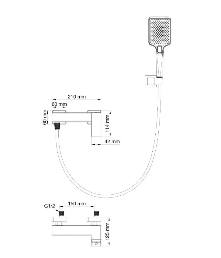- Душевой шланг с защитой от перекручивания: 150 см.