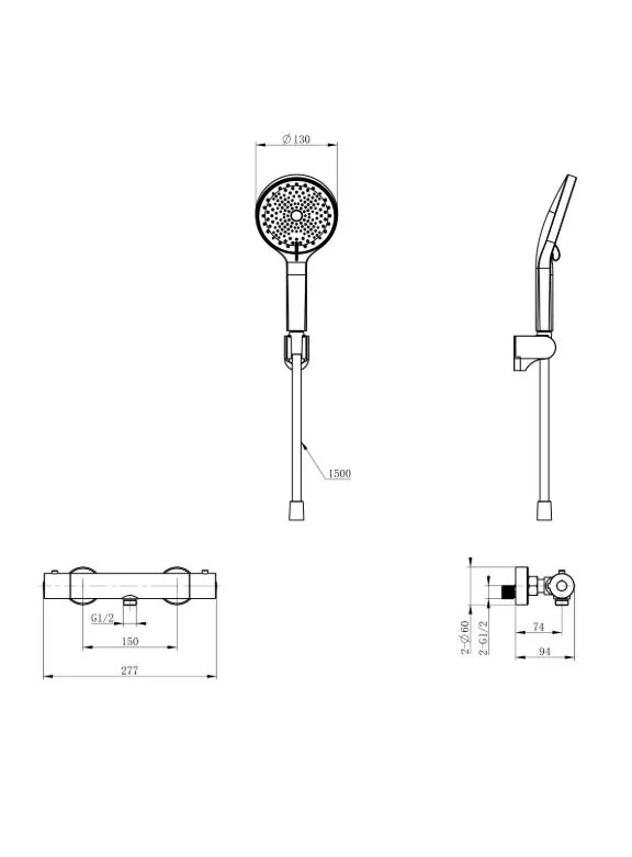 - Душевой шланг с защитой от перекручивания: 150 см.