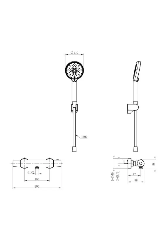 - Душевой шланг с защитой от перекручивания: 150 см.
