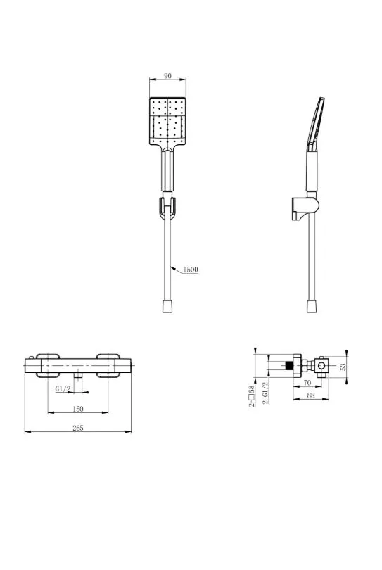- Душевой шланг с защитой от перекручивания: 150 см.