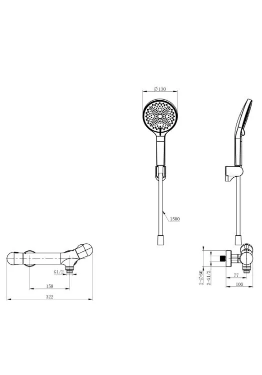 - Душевой шланг с защитой от перекручивания: 150 см.