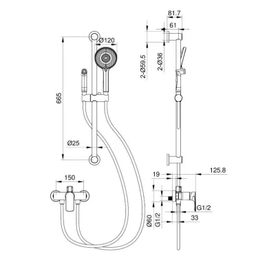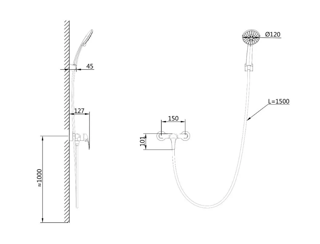 - Душевой шланг с защитой от перекручивания: 150 см.
